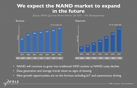 Figure 1.NAND flash market growth, as projected by Yole Développement (Q4, 2020)